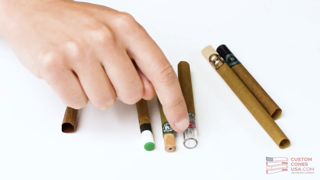 As for improving the smoking experience itself, there are a variety of custom tips that can be rolled into the end of the cigar. The main difference in tips is what they are made of. At Custom Cones USA, we carry wood and glass filter tips. Our glass tips are available in clear, smoky, and black, and come in a variety of shapes and sizes so you can pick which one will work best for your product!
