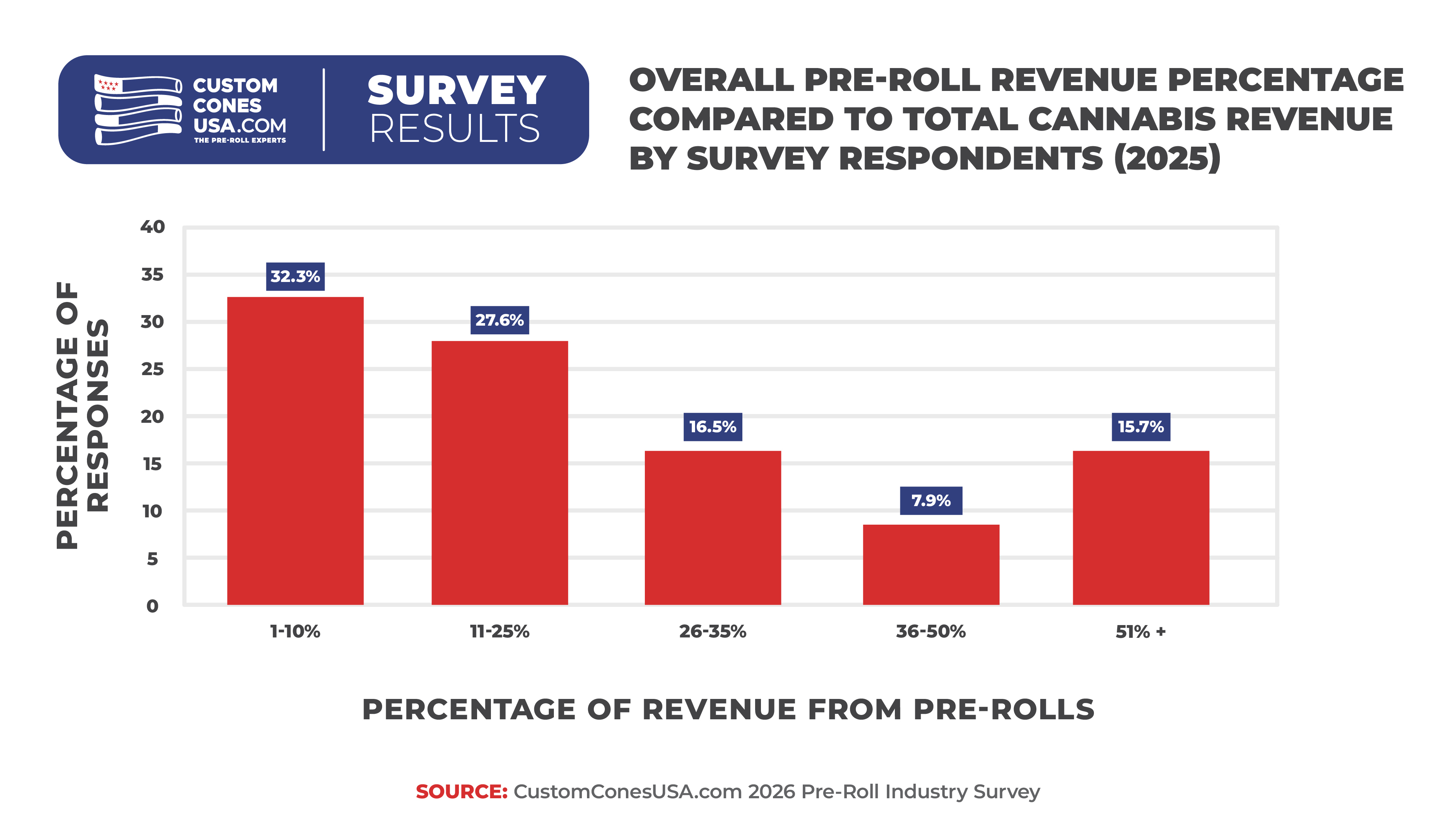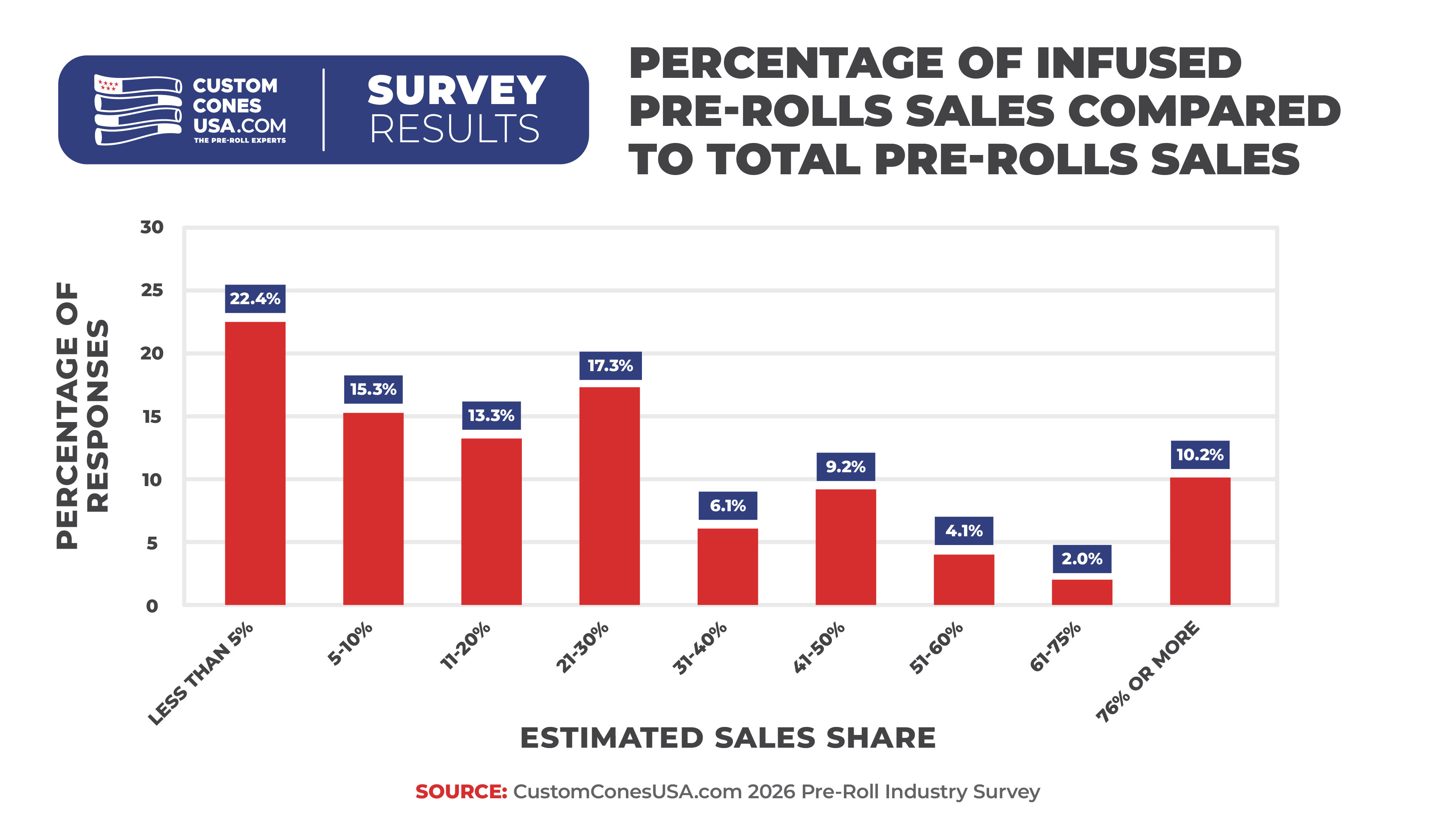 Interestingly though, for more than half of respondents (51%), infused pre-rolls still account for less than 30% of their business.