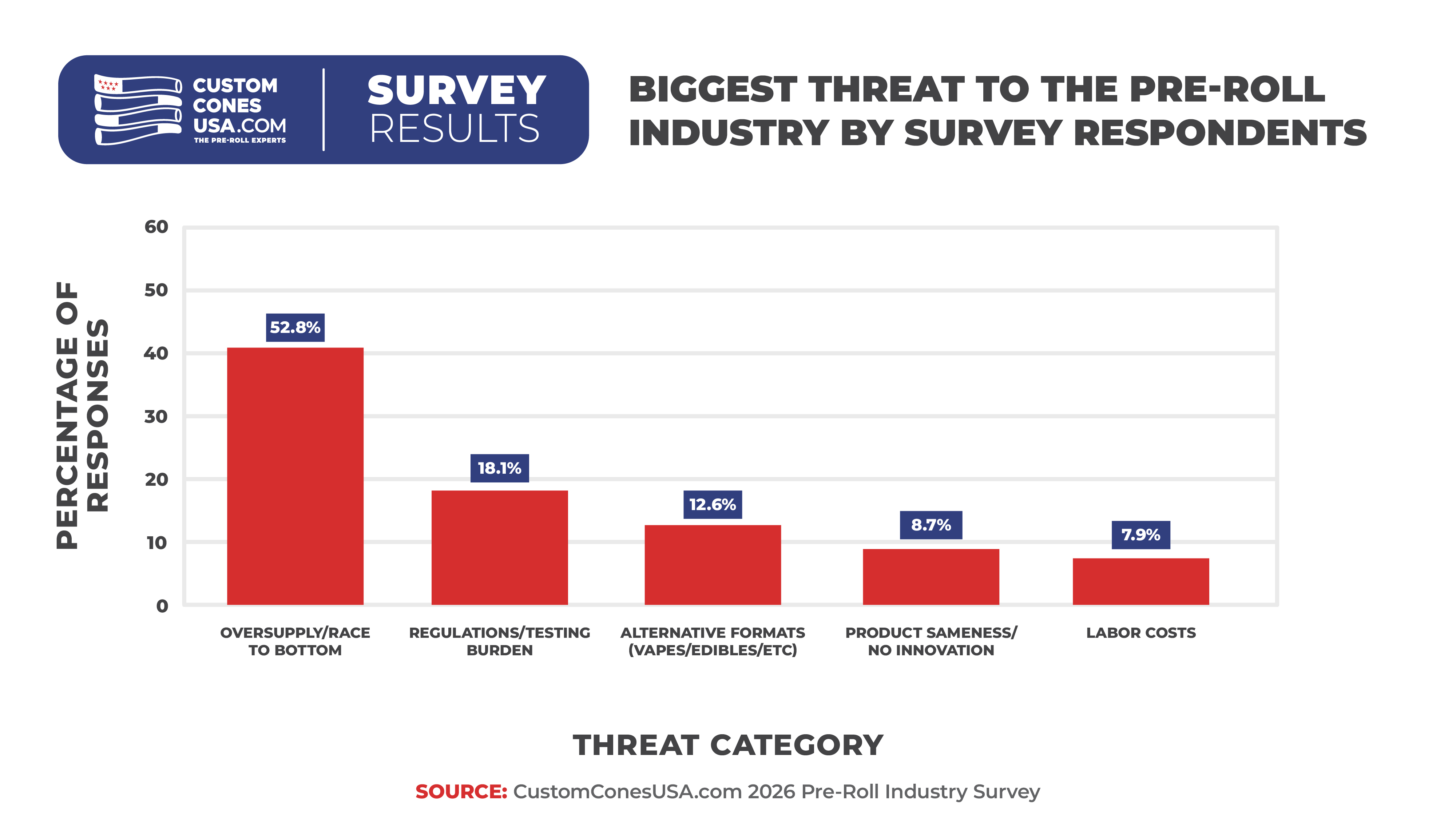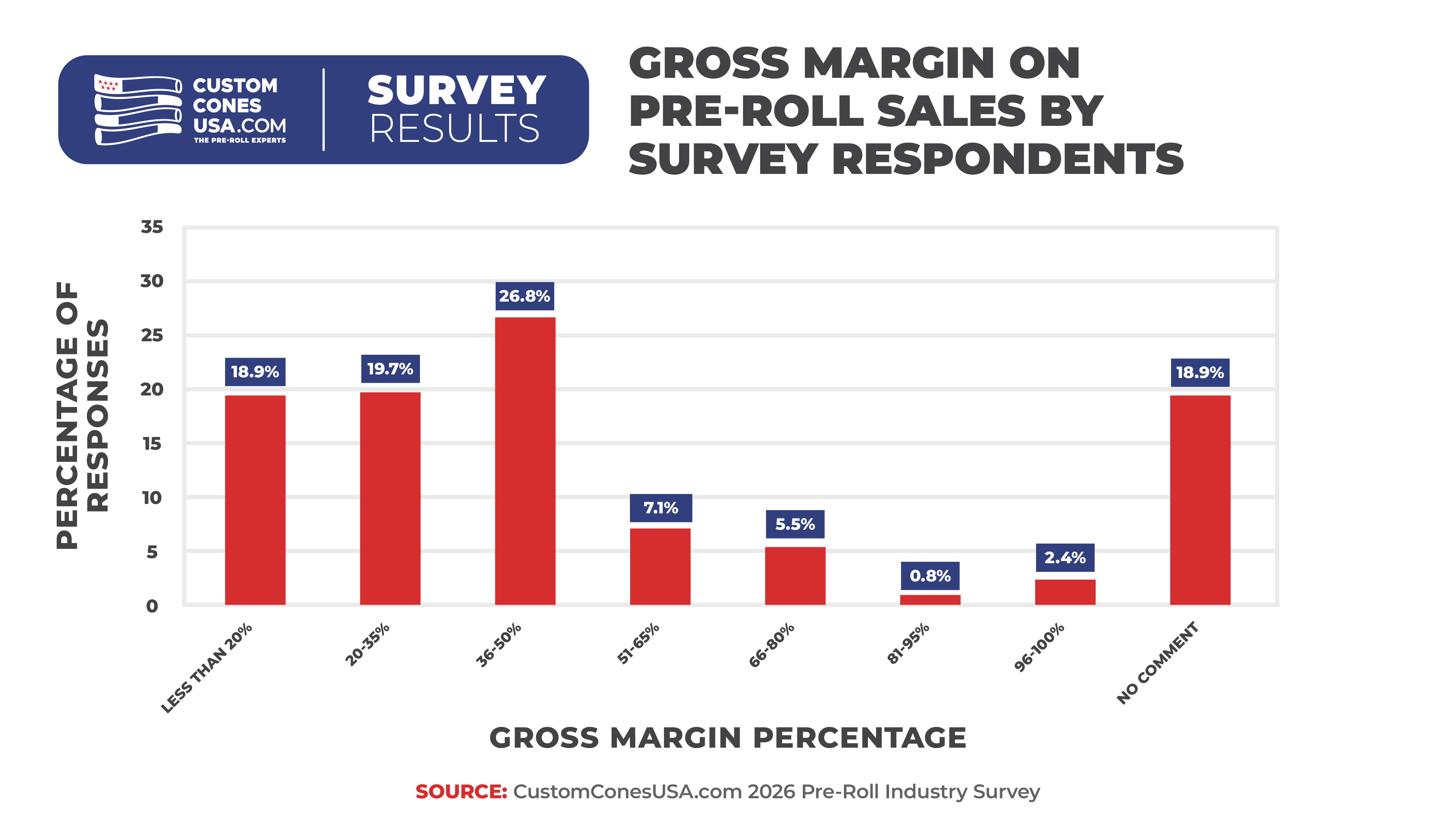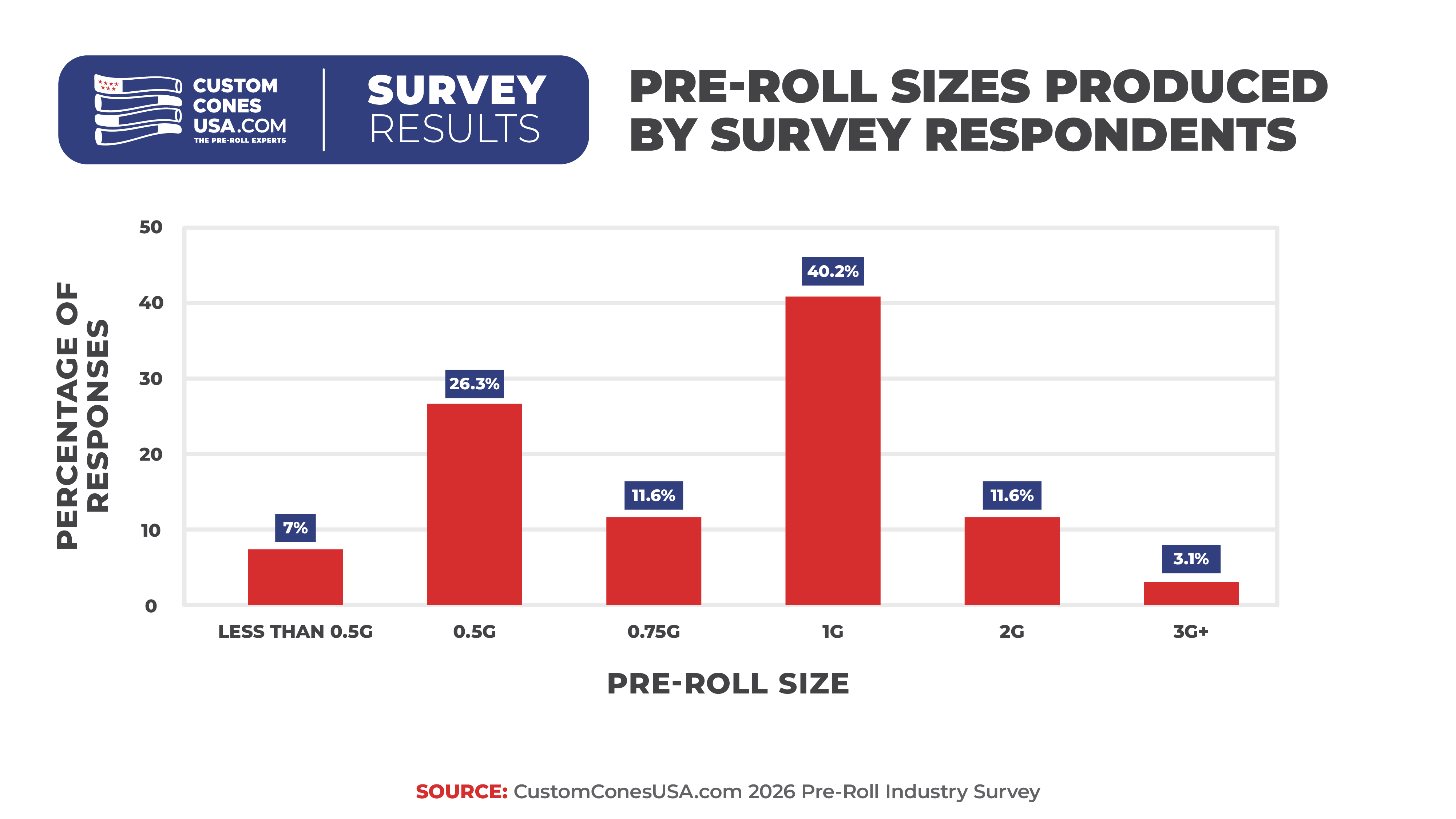 However, while producers now agree that brand is important, the majority of businesses (59.8%) in our survey still pack their pre-rolls in unbranded cones, leaving an opportunity for branding on the table.