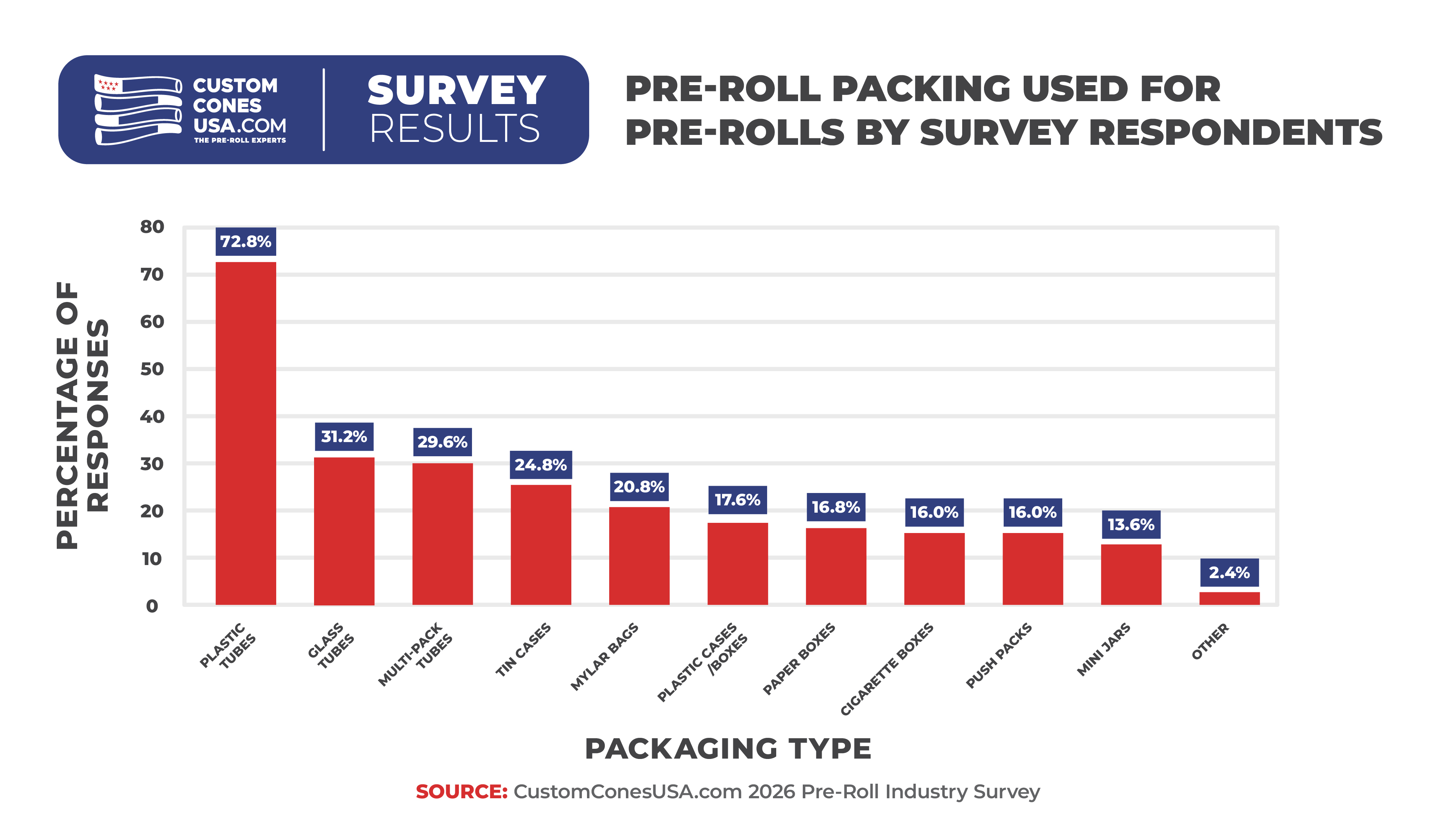 Glass Tubes come in a distant second with 34.7% choosing premium glass to highlight their pre-rolls.