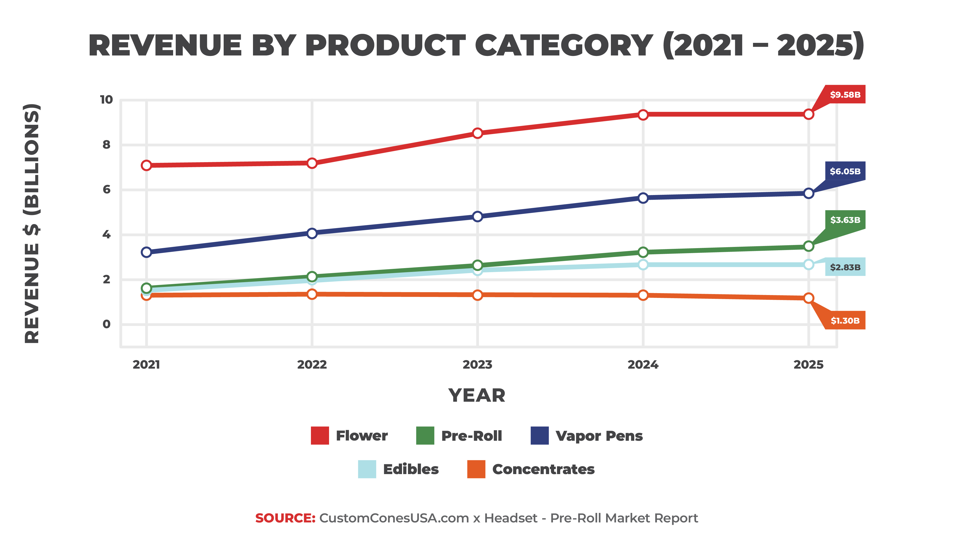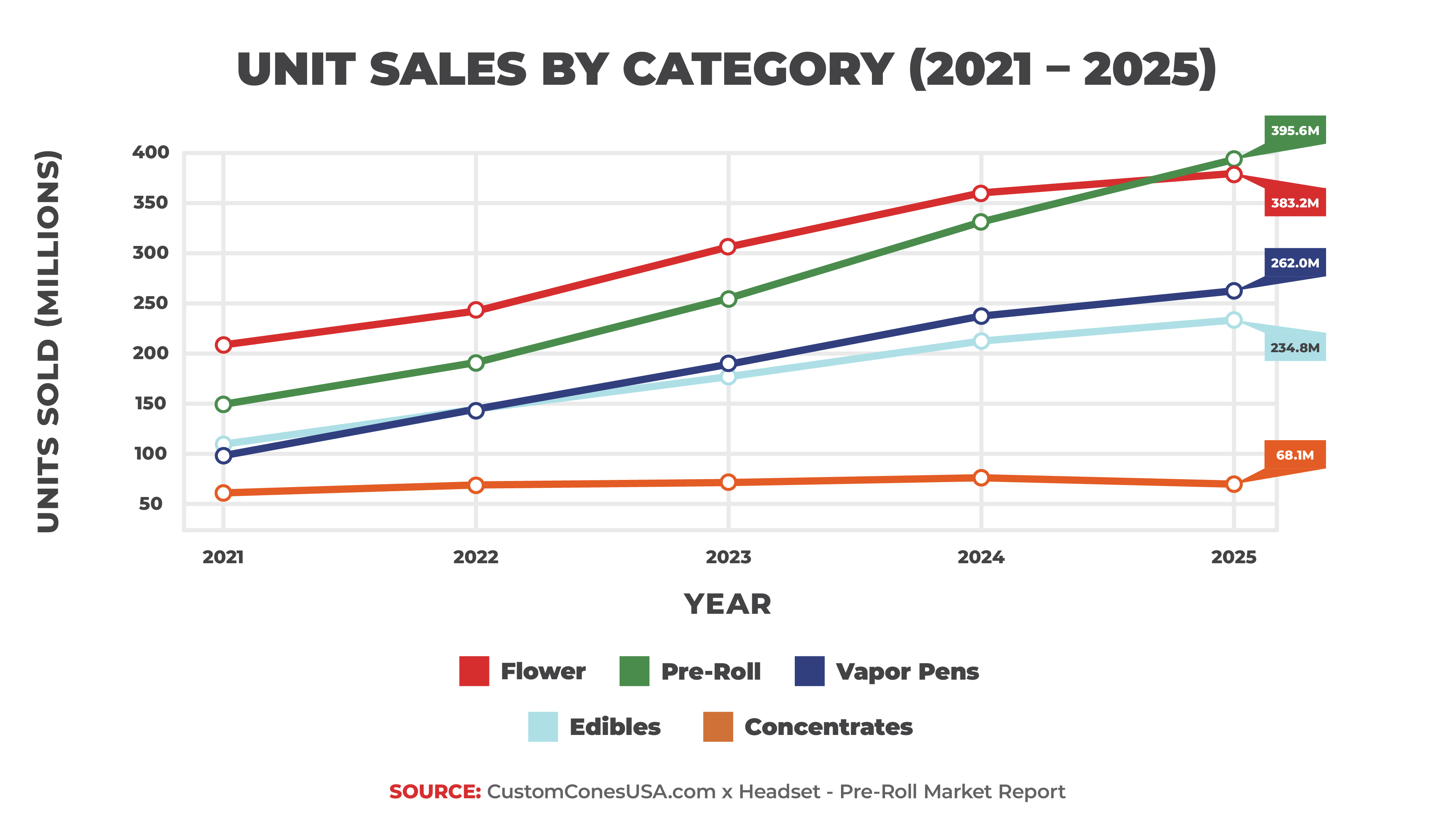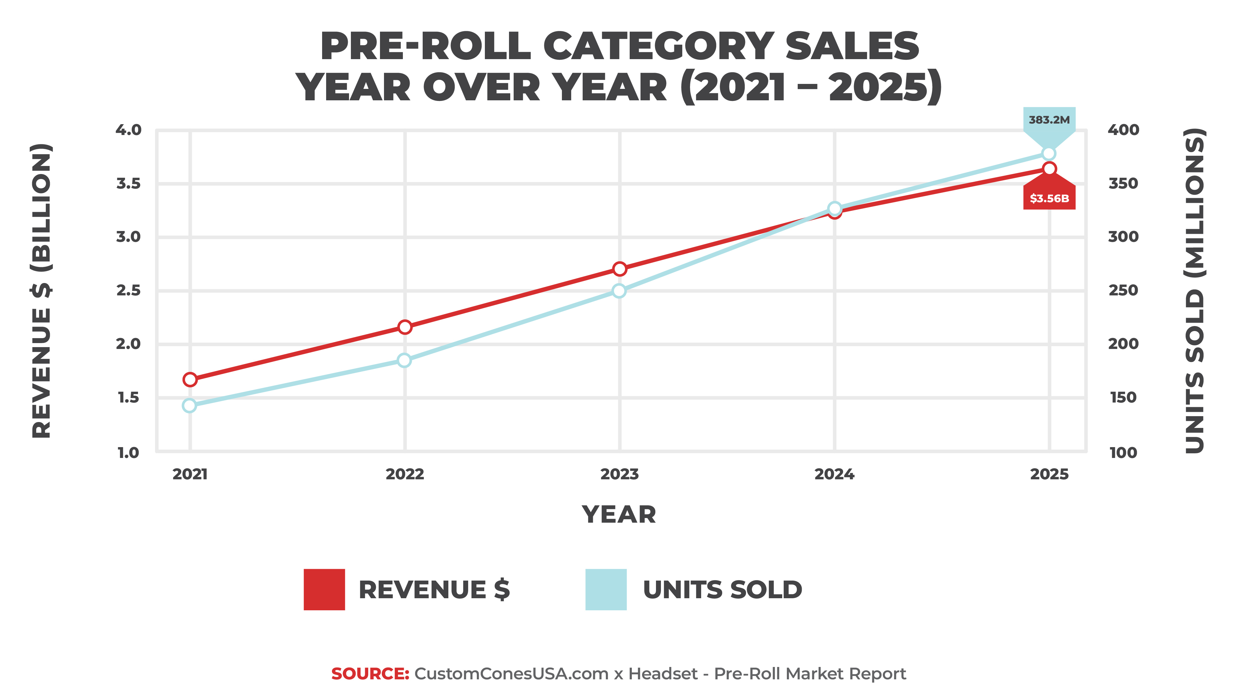 • $3.6B in pre-roll sales in 2025, representing a 15.9% market share and 383.2M units sold
